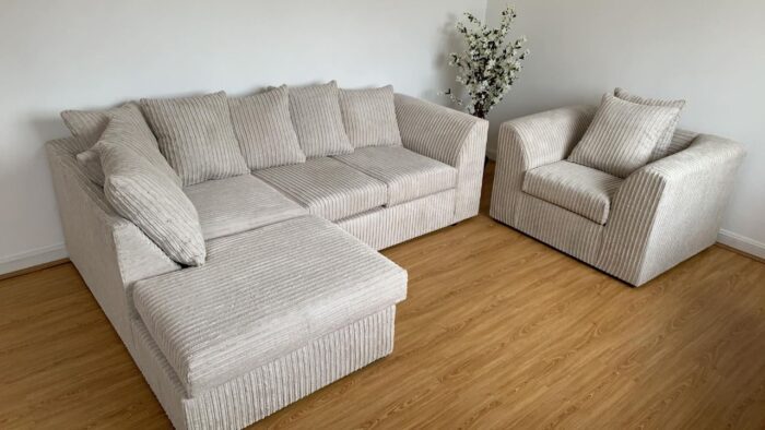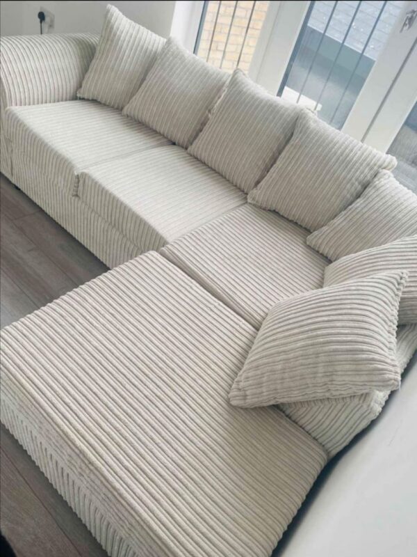 Fabric for the dylan jumbo cord corner sofa: Resistant to dust and stains, it ensures easy maintenance and long-lasting beauty, ensuring your dylan jumbo cord corner sofa remains as exquisite as the day you brought it home.