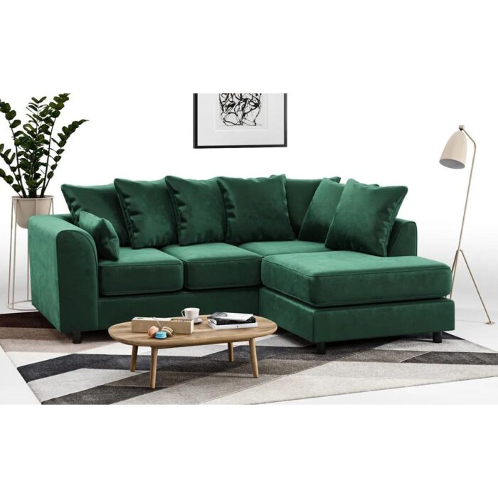 Frame of the dylan sofa corner: The dylan 3 seater sofa boasts a sturdy hardwood frame, ensuring durability and stability for years to come. Supported by high-quality springs and enveloped in plush foam padding, this sofa offers a luxurious seating experience. Its has ergonomic construction alleviate pressure points, making it the ultimate choice for lounging and unwinding.
