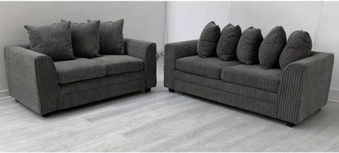 I ordered the grey jumbo cord sofa, and it arrived just as described on the website Perfect match