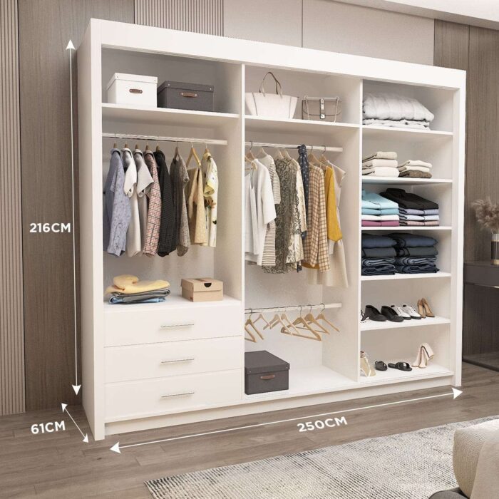 This affordable sliding wardrobe combines elegance, practicality, and durability. Whether you’re searching for a solid wood wardrobe, a glass wardrobe, or a mirror wardrobe with sliding doors, the Lyon Wardrobe offers the perfect blend of style and functionality.